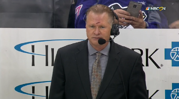 Шайба попала в голову комментатора телеканала NBC Брайана Энгблома (Brian Engblom) во время матча Национальной хоккейной лиги (НХЛ) между «Питтсбург Пингвинс» и «Сан-Хосе Шаркс». Об этом сообщается на сайте NBC.