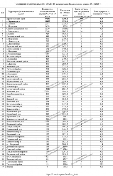 В Красноярском крае число заболевших коронавирусом за сутки увеличилось на 514 человек, из которых 333 — по официальной сводке, 135 новых случаев в Железногорске, 46 — в Зеленогорске. Общее число заболевших составило 43 907 за всё время пандемии.