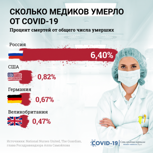 В «Списке памяти», который самостоятельно создали медики еще в начале эпидемии, сейчас немного меньше имен — 444. Данные о погибших врачах и медсестрах их коллеги собирают и лично проверяют, поэтому возможно, что часть информации им уже передана, но пока не опубликована.