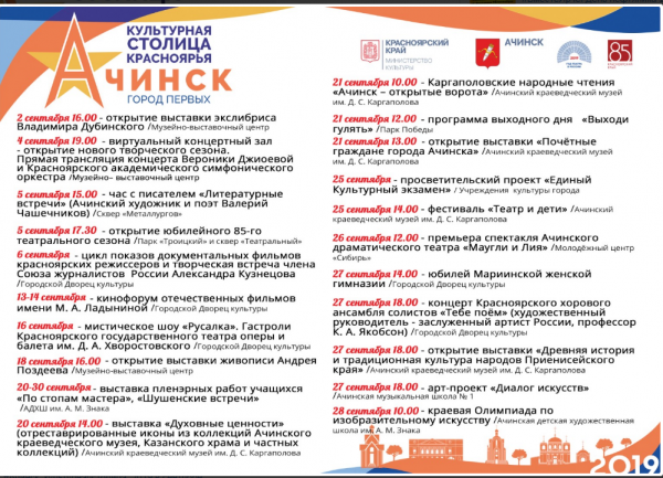Уважаемые жители и гости нашего города! Администрация Ачинска приглашает вас ознакомиться с культурными мероприятиями и событиями на сентябрь!