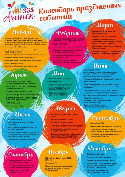 Общегородское фестивальное движение объединит 10 фестивалей различной тематической направленности на все возрастные группы и вкусы жителей Ачинска.
