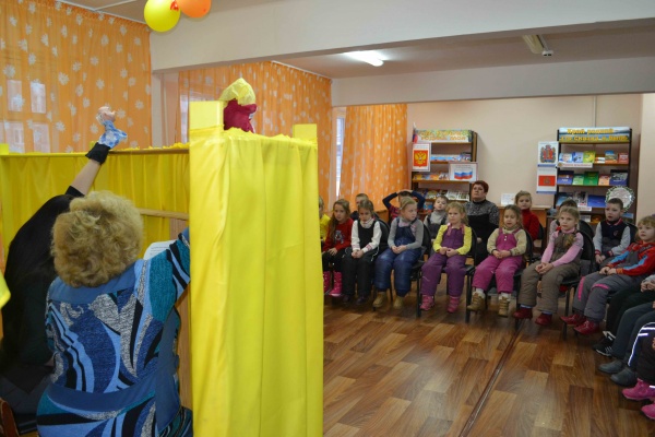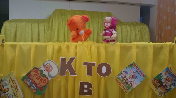 Дети совершили увлекательное путешествие: узнали много любопытного о театре: где появился, какие бывают, как вести себя, приходя на спектакль. Кстати пришлось стихотворение писательницы А. Барто «В театре». Ведущие перевоплотились в артистов-кукольников и показали театр стихов «В стране книг» (использовались куклы Маша и Медведь). Малыши ответили на вопросы викторины «Угадай-ка сказку», провели игру «Кто больше слов скажет на театральную тему?» и посмотрели кукольный спектакль «Кто в теремочке живет?». Выяснилось, что в тереме живут… книжки.