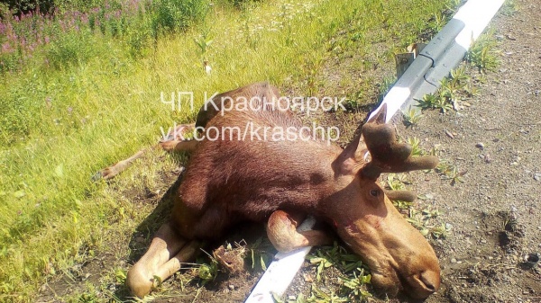 На трассе под Красноярском сбили лося.