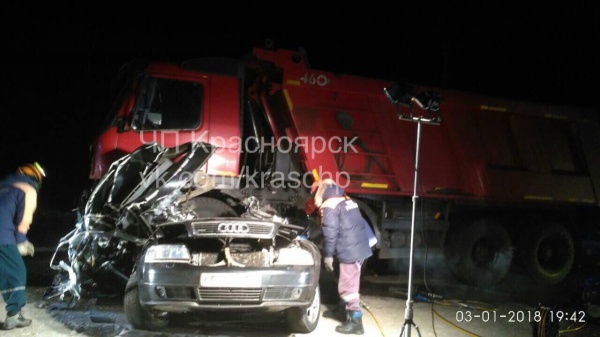 По словам очевидцев, авария произошла на трассе недалеко от Балахты. «Ауди» занесло и автомобиль попал под колеса грузовика. В ДТП погибла семья с двумя детьми. В ГИБДД эту информацию подтверждают.