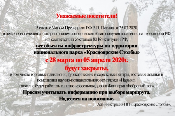 Уважаемые посетители национального парка «Красноярские Столбы»!