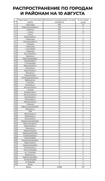 В Красноярском крае еще 127 человек заболели коронавирусом, эти данные за прошедшие сутки сообщили в оперштабе. Общее число заболевших составило 14 446 человек.