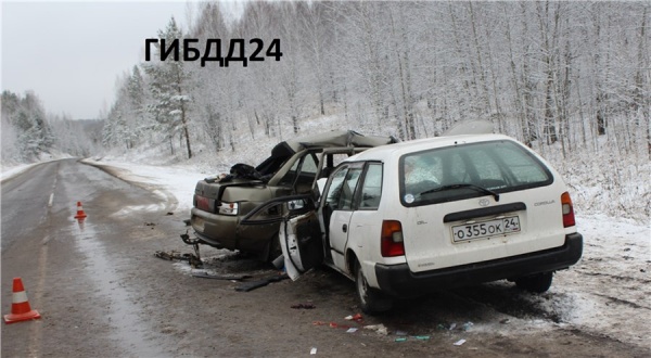 Водитель автомобиль ВАЗ, двигаясь со стороны Красноярска, выехал на полосу встречного движения и врезался в автомобиль Toyota. В результате ДТП погибли двое пассажиров отечественного автомобиля — мужчина и женщина. Еще шесть человек доставили в больницу: двое из них — дети 7 и 13 лет.